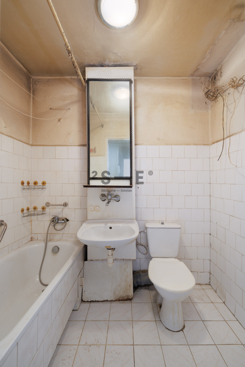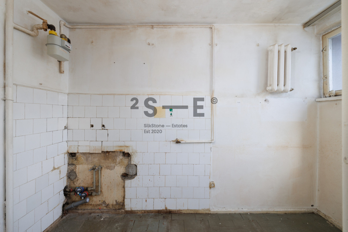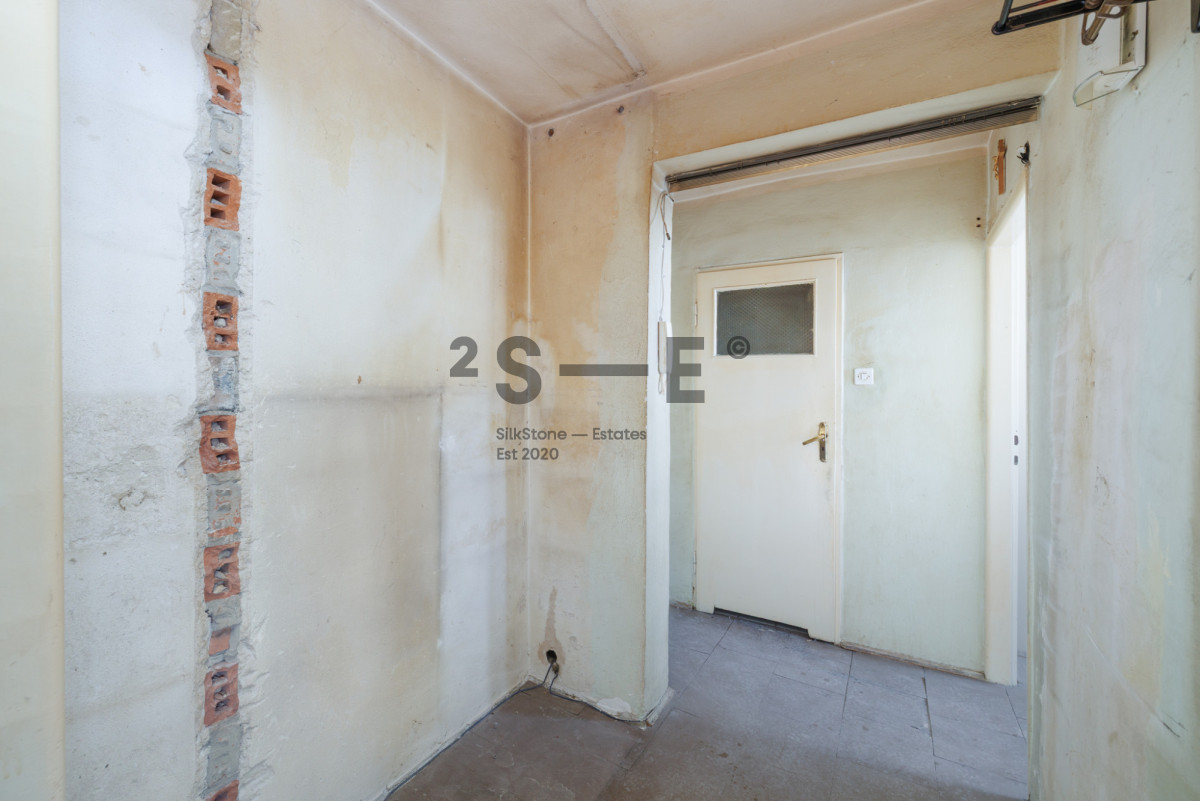 Lokal wymaga remontu, przeznaczony jest zatem dla nabywców, którzy szukają mieszkania do własnej aranżacji. Oprócz obecnego układu, możliwe jest również otwarcie kuchni na salon i stworzenie bardzo przestronnego salonu z aneksem kuchennym. Mieszkanie ma wysokość 2,47 m. Dzięki dużej ilości okien i ekspozycji na południowy-zachód jest tutaj dużo naturalnego światła. Okna w lokalu są drewniane. Do wyłącznej dyspozycji właścicieli jest również bardzo duża piwnica (ok. 15 m2).