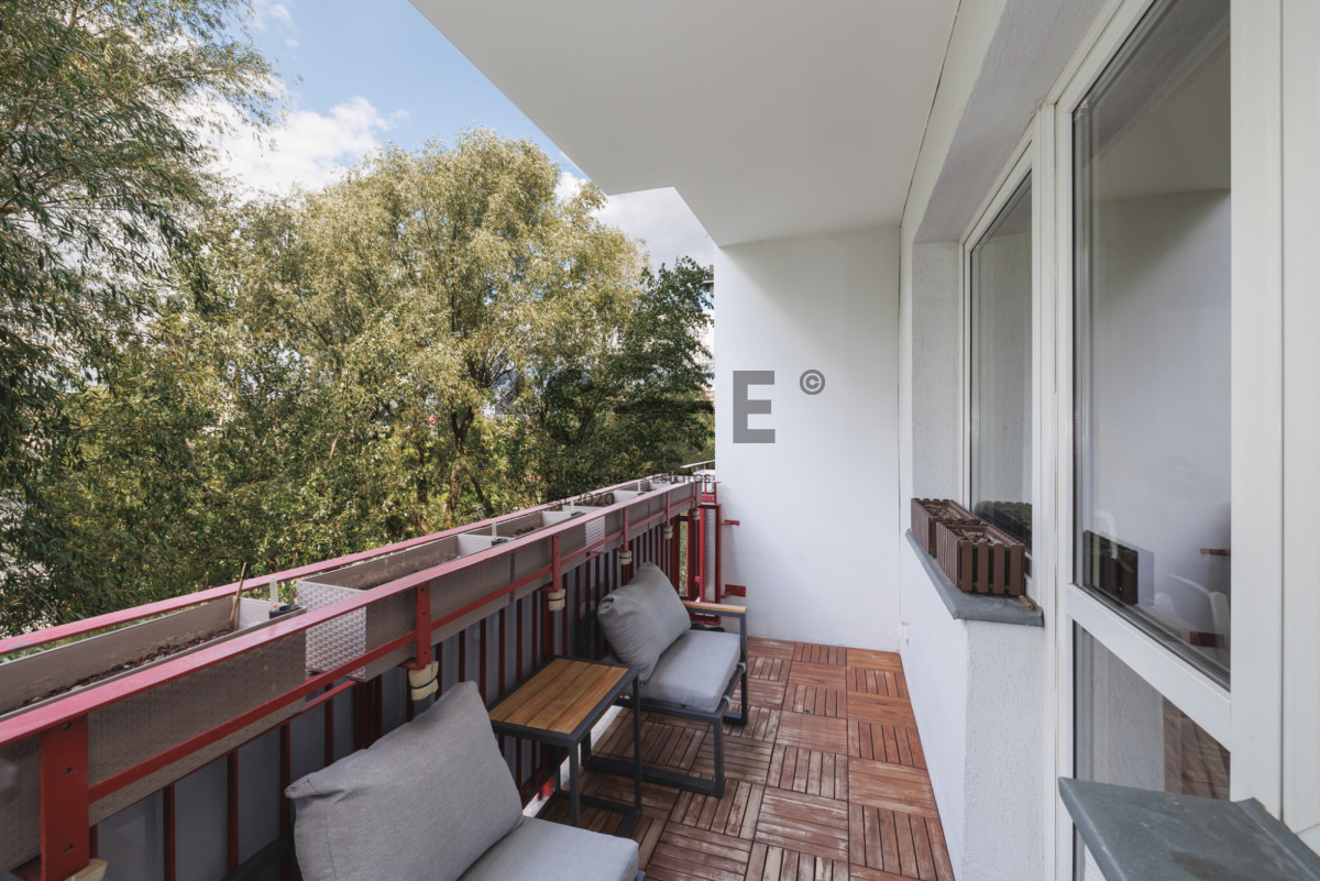 - Wygodny i ustawny salon (19 m2) z wyjściem na loggię (6 m2),