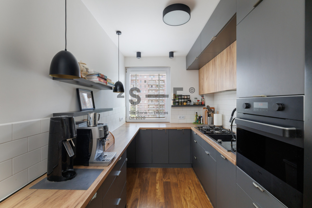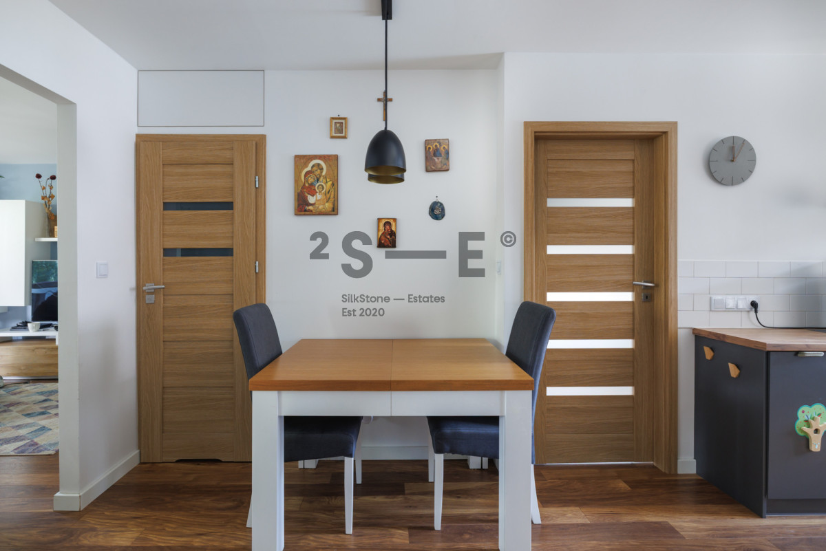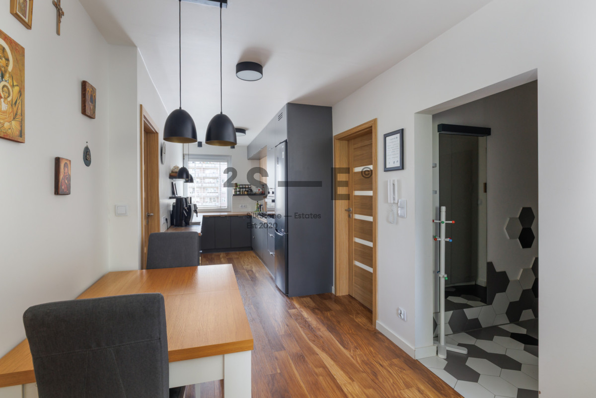 Mieszkanie przeszło generalny remont 6 lat temu i utrzymane jest w perfekcyjnym stanie. Jego funkcjonalny układ sprawia, że na niecałych 63 m2 mamy bardzo komfortowe 3 pokoje, dużą kuchnię oraz jadalnię, która znajduje się pomiędzy salonem a kuchnią. Przedpokój oraz salon wyposażone są w bardzo pojemne szafy wnękowe, na pewno nie zabraknie więc tutaj miejsca do przechowywania rzeczy. Dzięki dwustronnej ekspozycji na wschód (sypialnie) i zachód (salon), mieszkanie jest przewiewne i dobrze doświetlone. Okna oddalone są od ruchliwych ulic co sprawia, że panuje tu cisza i spokój.