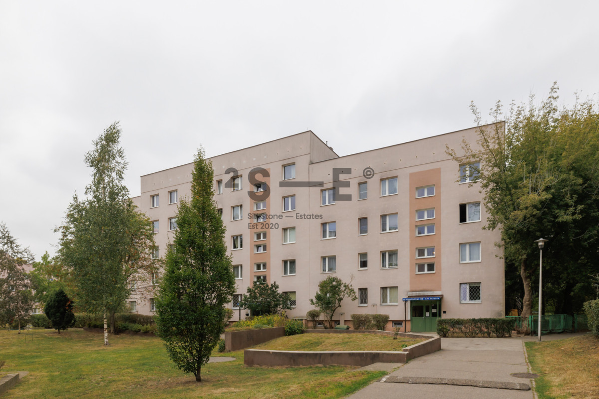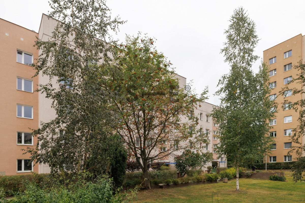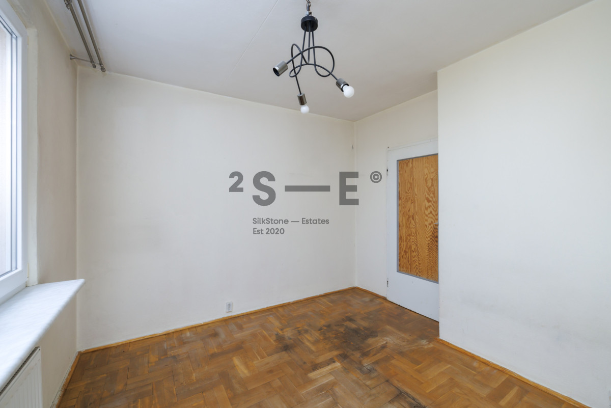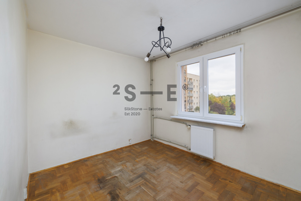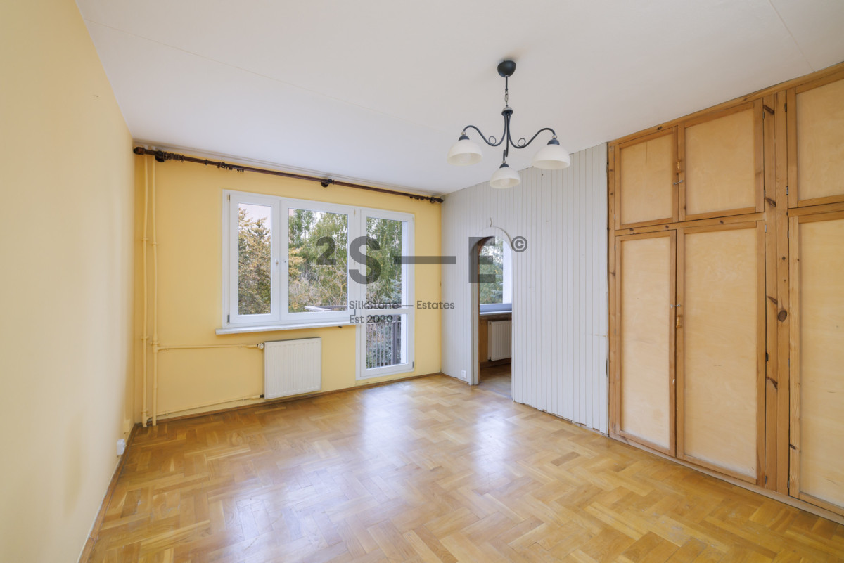 Z salonu mamy bardzo ładny widok na bujną zieleń. Na podłodze leży drewniany parkiet, który po cyklinowaniu nabierze nowego blasku. Mieszkanie ma wysokość 2,56 m. Dzięki dużej ilości okien i dwustronnej ekspozycji na południowy-zachód (salon) i północny-wschód (sypialnie) jest tutaj dużo naturalnego światła. Okna oddalone są od ruchliwych ulic, dzięki czemu mieszkanie jest bardzo ciche. Do mieszkania przynależy również piwnica (ok. 3 m2).