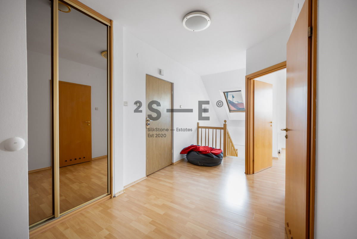 Na piętrze 2 sypialnie wychodzą na stronę południowo wschodnią a jedna na północny zachód.